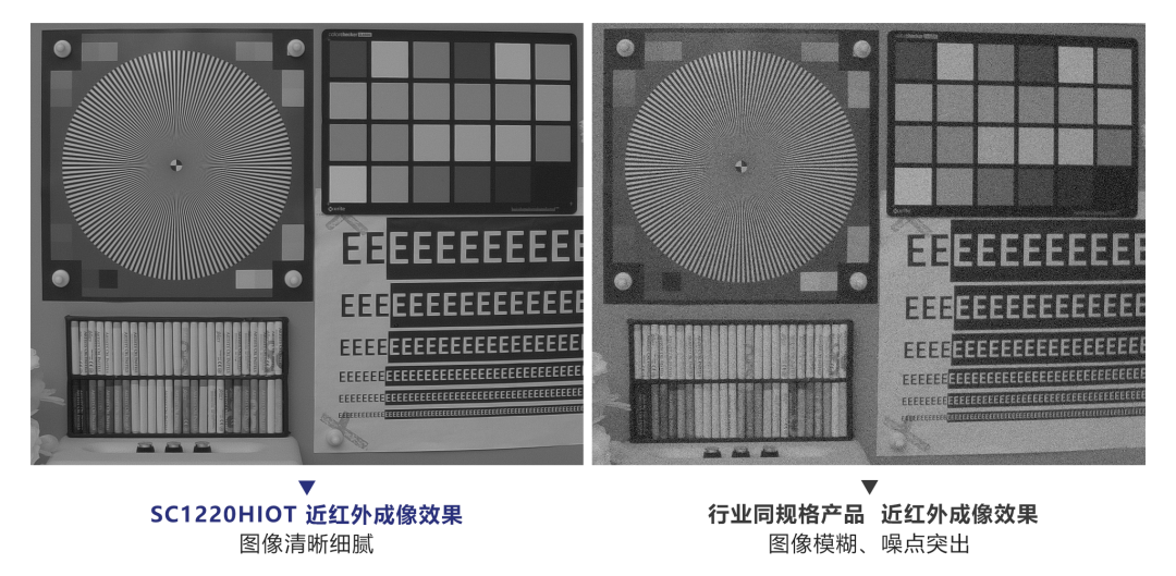 SC1220HIOT依托思特威SmartClarity®-XL技术平台打造,对近红外感度、噪声、动态范围等关键性能进行了全面升级。基于先进的Stacked BSI工艺,SC1220HIOT搭载了思特威SFCPixel®及超低噪声外围读取电路技术,近红外感度和噪声抑制性能突出,与行业同规格产品相比,其在850nm和940nm波段下的峰值量子效率(peak QE)分别提升约65%和103%,读取噪声(RN)降低约52%,能够在暗光场景中为摄像头捕捉到清晰细腻的高质量影像。