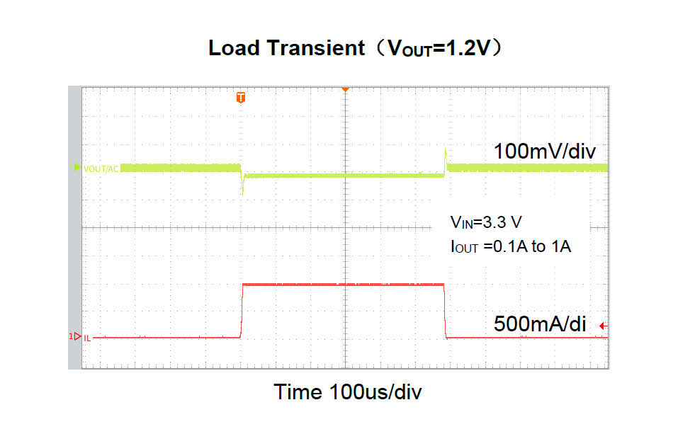 2. ACOT控制架构,带来更快的瞬态响应快速瞬态响应:自适应恒定导通时间控制技术,能够迅速响应负载变化,确保输出电压稳定,特别适合为处理器、FPGA等动态负载供电。下图展示了其出色的负载瞬态响应性能