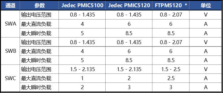 FTPM5120集成SWA / SWB / SWC三个降压DCDC与 2个LDO,不仅减少了外围元件数量,降低了 BOM 成本,还优化了 PCB 布局空间,助您设计出更紧凑、更高效的内存模组。